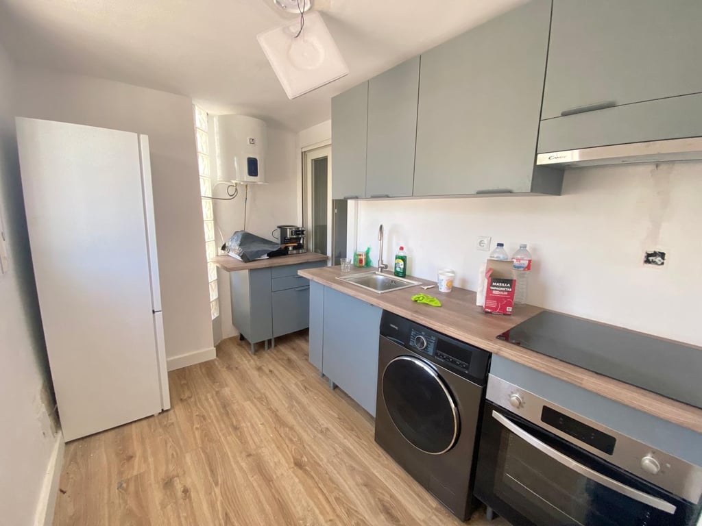 Modernised Townhouse for sale in El Chaparral close to Torrevieja and with great views of the nature reserve of La Mata. The property is entered from a quiet pedestrian road via a gate onto the front patio with a great space for lounging in the sun. Through the glazed entrance you are greeted by a bright and airy living space. The well equipped independant kitchen is to the left. A double bedroom is to the rear of the property and there is also a walk in war...