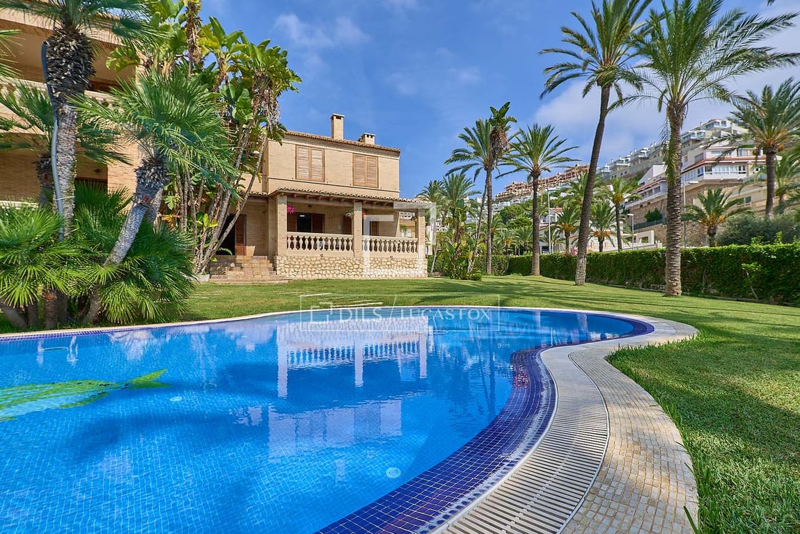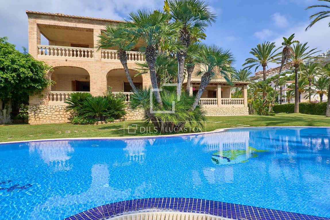 The entrance to the hall is already a preview of the magnificent house that we are going to find; high ceilings, fired brick walls, marble tile floors with original drawings, luxury in every detail. To the right of the hall we enter a dining room of more than 50 sqm, with a fireplace and two direct accesses to the terrace and from where we can already enjoy the views of the sea and the property's palm grove. The house has two fully equipped kitchens, a very spacious one with a dining table a...