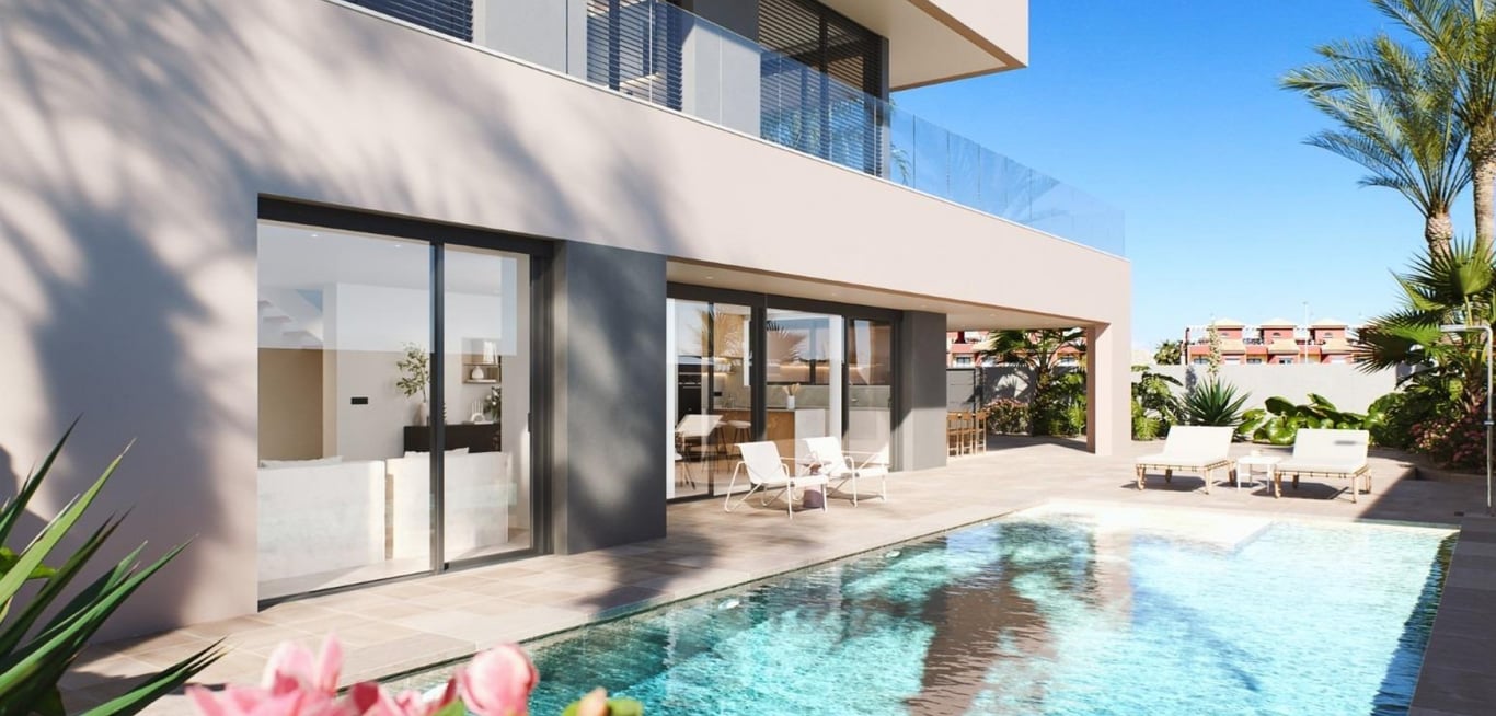 NEW BUILD VILLA IN TORRE DE LA HORADADA Modern New Build villa near Higuericas beach in Torre de la Horadada. The villa consists of a plot of 618 m2, with 344 m2 constructed. Villa has 5 bedrooms: two of them with complete bathroom and dressing room. Kitchen furnished with top quality materials to be chosen by the owner, including electrical appliances, following an open concept with the dining room surrounded by large windows that provide throughout the day a pleasant light and direct access...