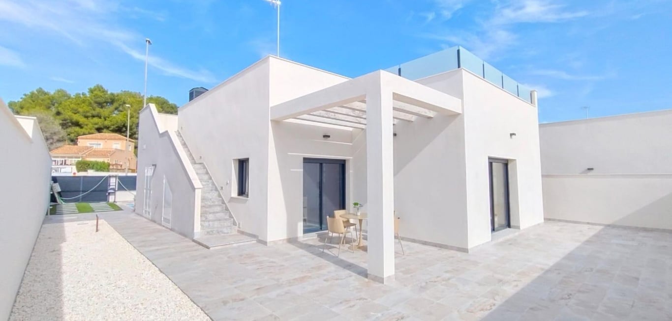 NEW BUILD VILLAS IN PINAR DE CAMPOVERDE Modern residential of newly built villas in Pinar de Campoverde. Small development of only 5 villas, built on one floor with a distribution of 3 bedrooms and 2 bathrooms, open plan living and dining area, fully equipped kitchen, with central island views to the private swimming pool, on independent plots starting at 300,00 m2. There is also a large solarium to enjoy the sun and the beautiful views all year round. The villas are in a privileged location ...