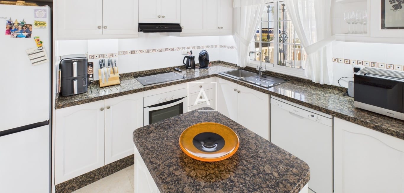 We are pleased to introduce this beautifully presented detached villa, ideally situated just a short walk from a selection of local amenities, including supermarkets, bars, and restaurants. This property is not part of a community, offering complete independence and privacy. The exterior boasts an 8m x 4m private swimming pool and off-road parking for two vehicles. The low-maintenance garden includes a storage unit, raised planter, and a charming covered seating area off the utility room—perf...