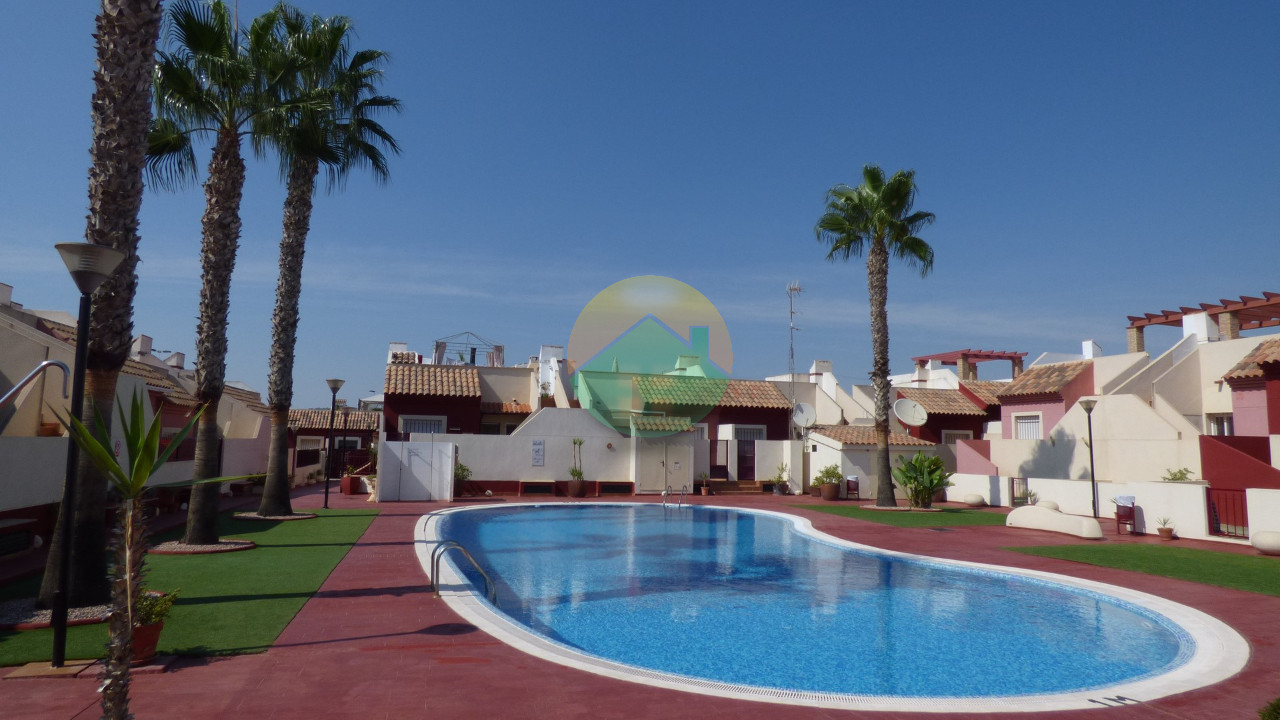 Great 3 bedroom, 2 bathroom property on Saladillo Golf. Semi-Detached. Main bedroom has en-suite bathroom. 2nd bathroom is disabled friendly. Corner plot 343m2. Fully furnished with white goods. Wonderful COMMUNAL swimming pool and CHILDREN'S play area. Space for a private pool. South facing. Solar panels for electricity. Grills & Fly screens. Double glazed windows. Retiled roof terrace with sun room. Stunning mountain views. Off roard parking with sliding gate & carport. Fish pon...