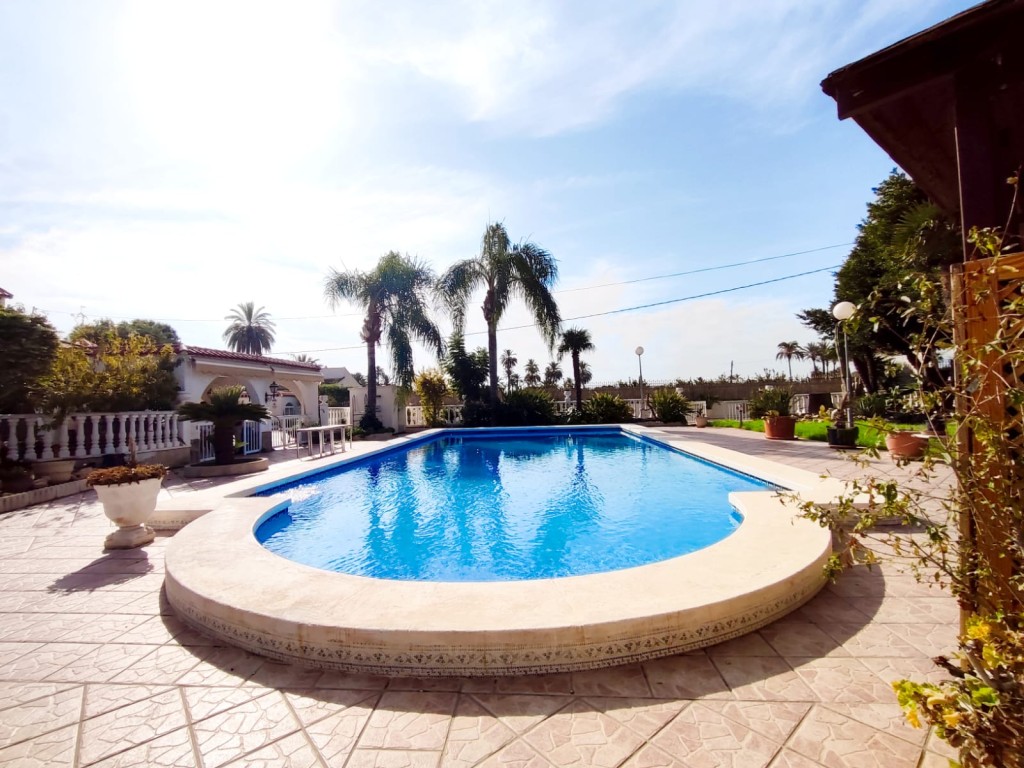 DELIGHTFUL DETACHED VILLA WITH 5 BEDROOMS AND 3 BATHS, PRIVATE POOL, AIR CON, ELCHE InterProperty Sales are pleased to offer this spectacular detached villa in one of the most sought-after areas of the Elche countryside. It boasts a 2,525m2 plot (according to the title deed) with extensive gardens, a covered parking area, a barbecue area, a swimming pool with a toilet and changing room, a vegetable garden and fruit trees, and a large covered terrace, ideal for enjoying meals with friends or ...