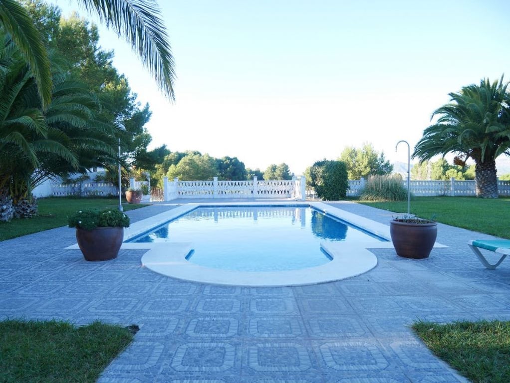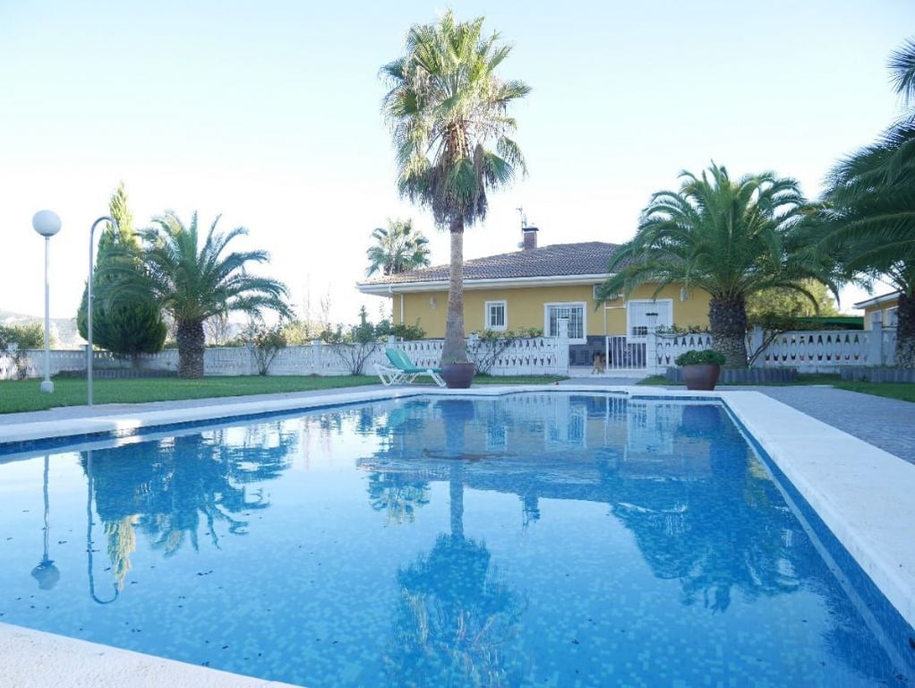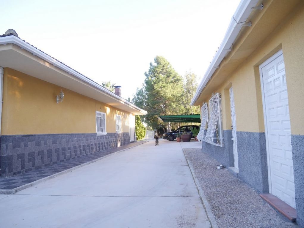 COUNTRY HOME 4 BEDROOM 4 BATHROOM IN ELDA InterProperty Sales are delighted to present this Rustic ground floor country house in Elda (Alicante), just 35 minutes from the beach. The house consists of 4 bedrooms, 4 bathrooms, a large living room with chimney, a closed kitchen and has a living area of 263m2 and a fenced plot of 4425m2. In the garden is a private pool, a carport for 3 cars and a very large garden area with lawn, palm trees and other shady trees. The garden is very well maintaine...