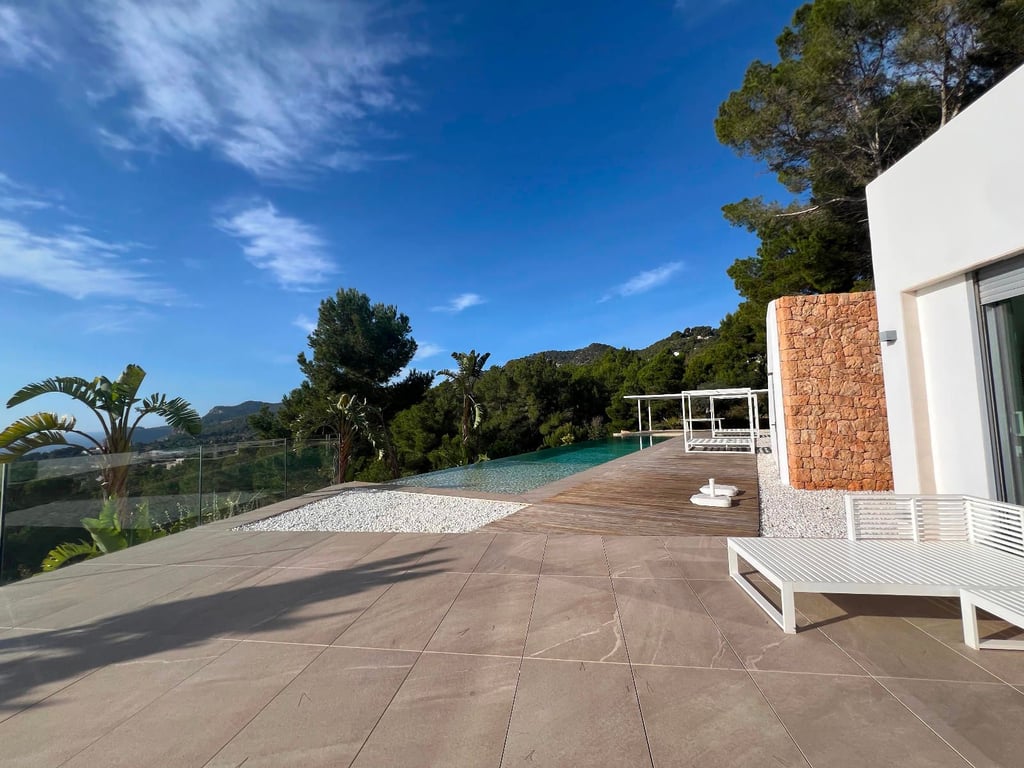 Exclusive luxury villa in Es Cubells with spectacular sea views. It has 5 spacious bedrooms with en suite bathrooms and 1 guest toilet. The designer kitchen is perfectly integrated with the living-dining room, offering an open and luminous space thanks to its large windows. In the basement, there is a large garage with capacity for 5 cars. Outside, enjoy the private swimming pool, several garden areas and an elegant chill out area to relax. Modern design, top quality finishes and a privileged lo...