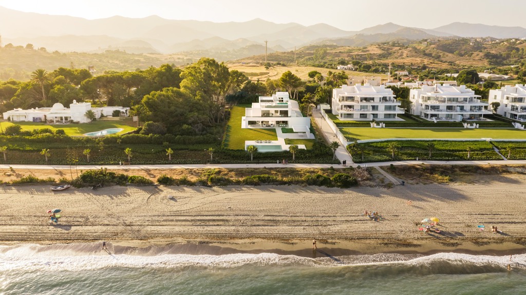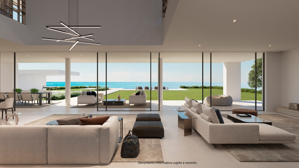 This spectacular villa is located on the best plot on the first line of the Mediterranean Sea between Marbella and Estepona. Located on a 3,000 m2 plot with more than 35 linear meters of frontage to the sea, this villa has a total constructed area of more than 1,349 m2 surrounded by more than 1,640 m2 of gardens. Facing south, with total privacy, the interior is full of light and sea views. The layout of the villa has been designed to achieve maximum sea frontage and thus emphasize the endless...