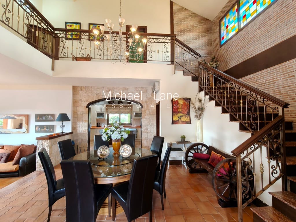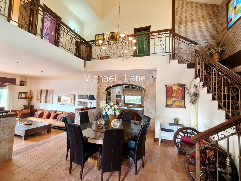 Discover this impressive three-level villa built with high-quality materials and designed to combine elegance, comfort, and functionality. Set on a generous 4,250 m2 fully fenced plot with an automatic gate, this property is located in the peaceful area of Guadalobón, close to Valle Romano and only a short drive from Estepona Port and the town centre. The villa features 6 bedrooms, 3 bathrooms, and a guest toilet. On the entrance level, you are welcomed by a majestic dining area with a high cei...