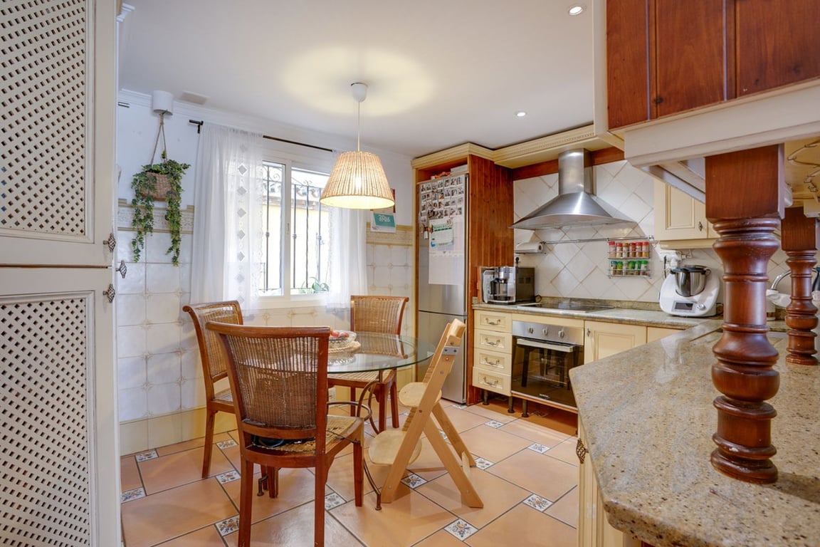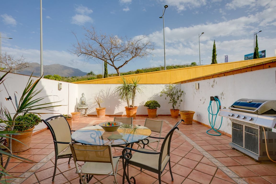 Fantastic 5 bedroom townhouse in Estepona in a very quiet and residential area, justa a few minutes walk to Estepona and its beautiful beaches. On the ground floor we have a large and bright dining and living room featuring a fireplace, and a semi open plan kitchen. On the first floor you will find three large bedrooms and a small terrace, and a large bathroom with jacuzzi. The master bedroom is on the second floor with a large bathroom ensuite with direct access to a terrace with stunning ...