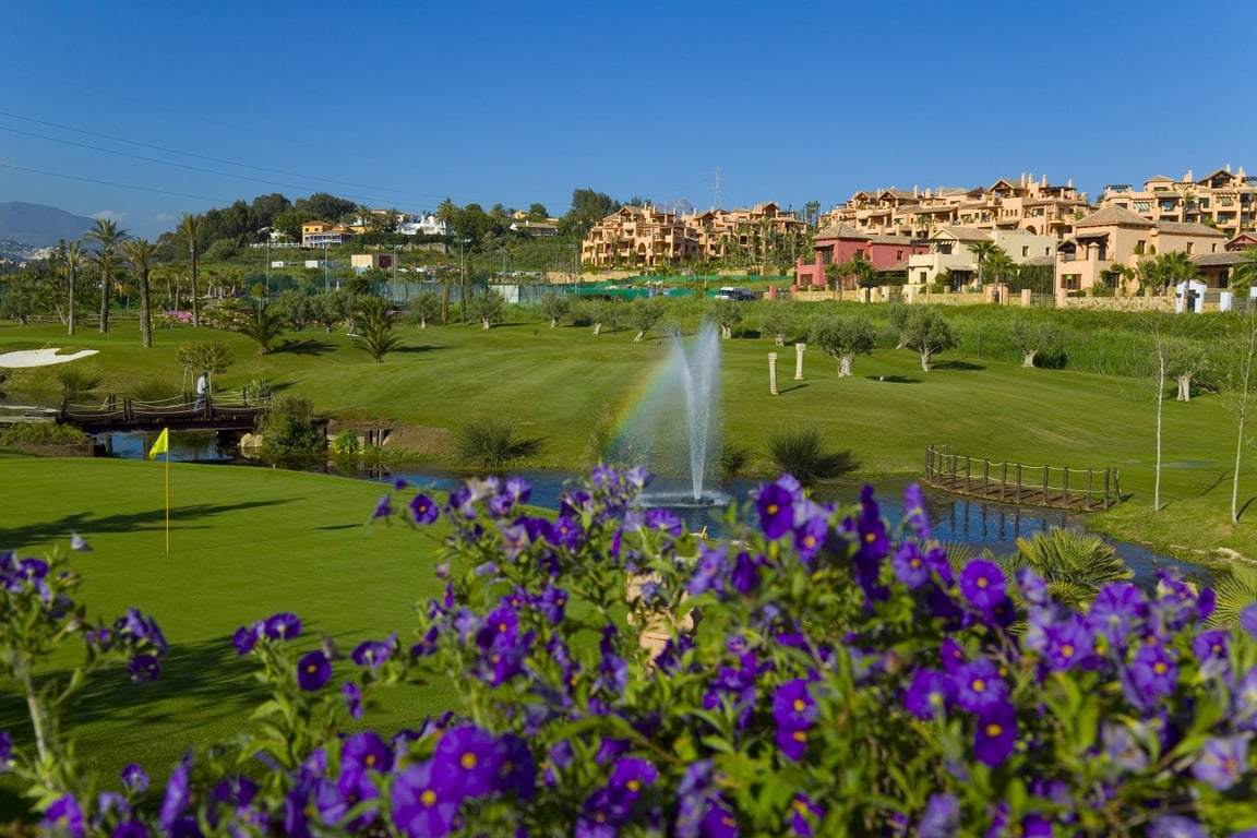 This new residential complex in Estepona consists of 47 Frontline Golf townhouses in the golfing heart of on the Costa del Sol, next to «El Campanario Golf & Country House» where you will find a wealth of onsite amenities including cafes, restaurants, golf shops and other sport and wellness facilities. Built in traditional Andalusian style the frontline golf properties enjoy large terraces with lovely views and plenty of natural light. The 3-bedroom homes include a covered porch and a solarium ...