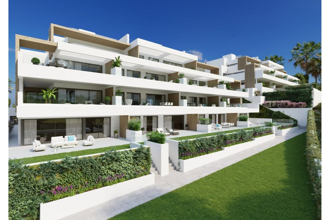 ESTEPONA, Costa del Sol ... Brand new, ESTIMATED DATE OF COMPLETION 2025 40 modern homes with 2 and 3 bedrooms with large terraces. You can find ground floors with large gardens and duplex penthouses with dream terraces where you can enjoy with yours in a unique and special way. All homes enjoy open furnished kitchens, designer bathrooms, spacious living rooms, high quality finishes. In addition, all homes include a covered garage and storage room. We configure all the homes individually with y...