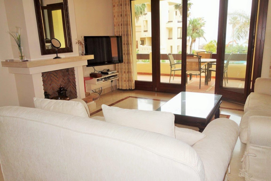 Beachfront complex on the new golden mile between San Pedro de Alcántara and Estepona. This apartment is situated in the middle of the complex with nice views to the garden overlooking the pool and the sea. The apartment consists of 2 bedrooms, 2 bathrooms, dining and living room with a fire place, a nice south facing terrace. The apartment comes with an underground parking and a storage room. The urbanisation has a very nice pool area with a beach bar, nice tropical gardens with access to a san...