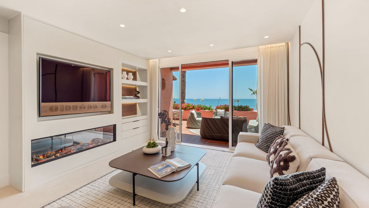 NEW GOLDEN MILE ... 2 Bedroom, 2 bathroom Apartment FREE Notary fees exclusively when you purchase a new property with MarBanus Estates This recently remodeled first beach line apartment impresses with its open views of the Mediterranean and its closeness to the beach. This exquisite property consists of 3 bedrooms and 2 bathrooms, an open-plan designer kitchen with top end German appliances, elegant floors, an electric fireplace, a Bang & Olufsen sound system and a stylish living and dining wit...