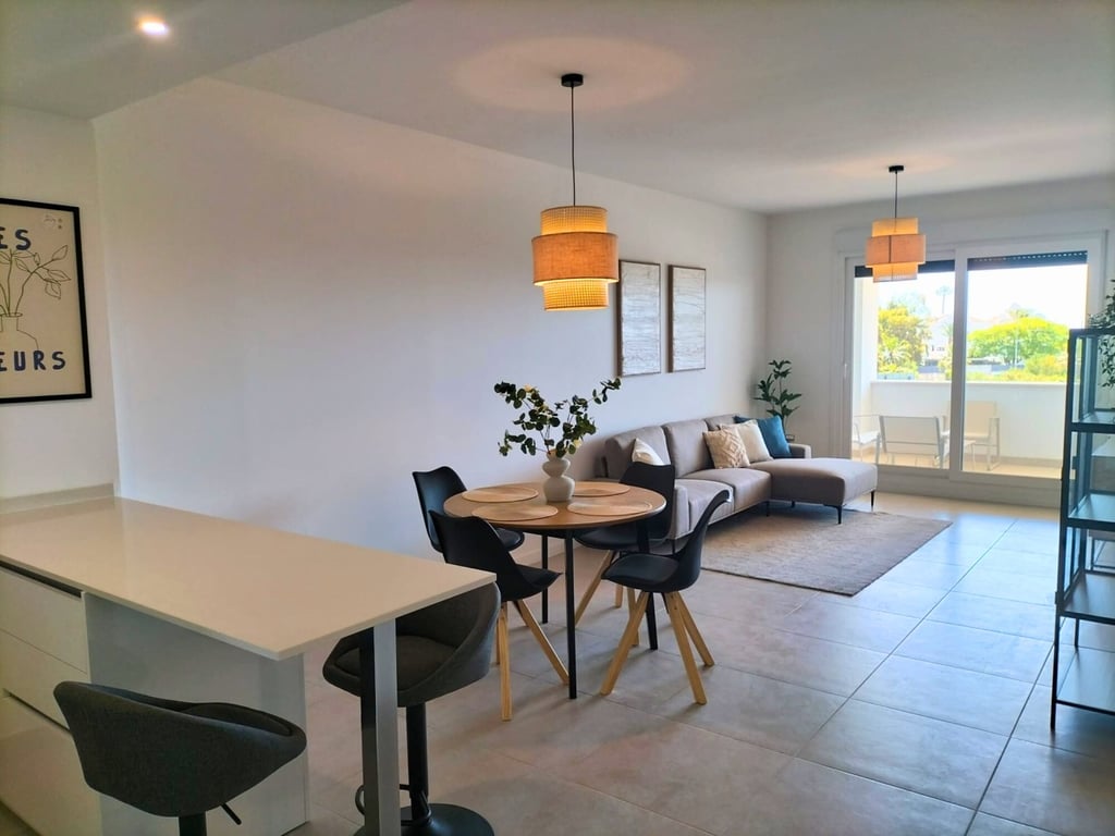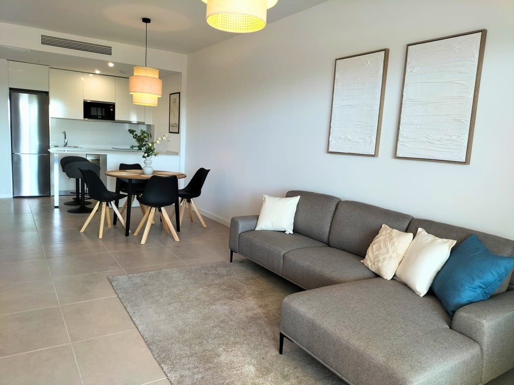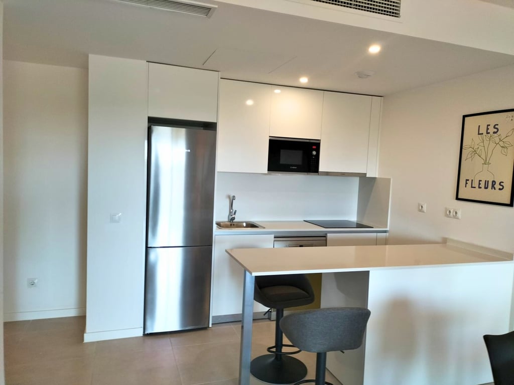 This brand-new 3-bedroom, 2-bathroom ground floor apartment offers modern living in a prime location. The master bedroom features an en-suite bathroom and direct access to a private garden with low-maintenance artificial grass. The fully equipped open-plan kitchen flows into a spacious and bright living area, which opens onto a covered terrace. Sold fully furnished, the property also includes fitted wardrobes, hot and cold air conditioning, a private parking space, and a storage room. The commun...