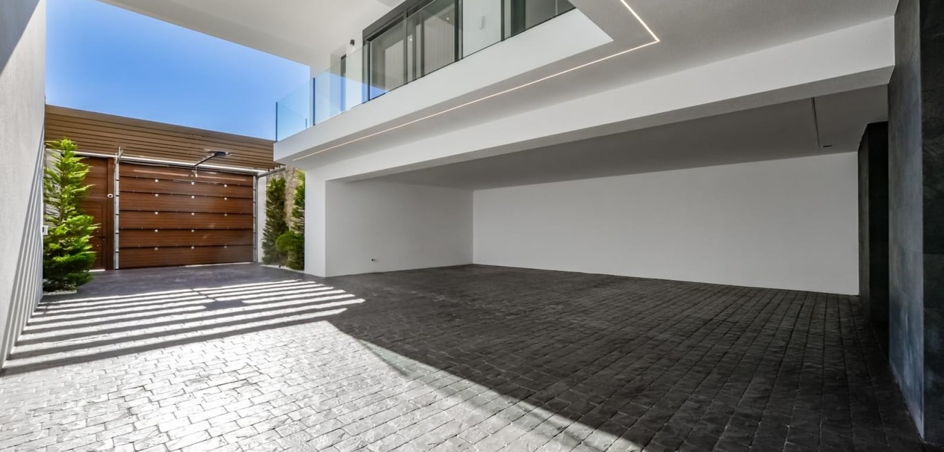 NEW BUILD LUXURY VILLA IN FINESTRAT WITH THE SEA VIEWS New Build Luxury villa with the sea views in Sierra Cortina, Finestrat. Arriving at the Urbanisation there is a natural stone wall with a height of 7 metres and the automatic access gates to the villa arriving at the covered garage at street level with double height, natural light and garden with palm trees of different heights of 180 m2, a glazed room of 78 m2 with lift, interior staircase, cloakroom and enough space to put armchairs, con...