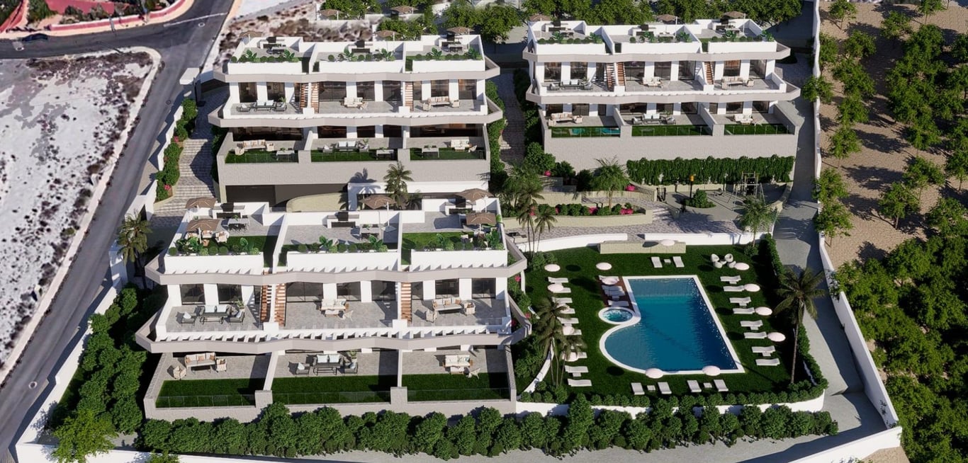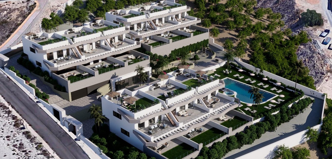 NEW BUILD RESIDENTIAL COMPLEX IN FINESTRAT New Build unique and exclusive high standing residential complex in Balcon de Finestrat. This complex of modern bungalows with 2 and 3 bedrooms, all with 2 bathrooms, open plan kitchen with the living and dining room. Top floor bungalows with private solarium and ground floor bungalows with private garden and possibility of private pool at an extra cost. Properties has loads of natural light and designer island in the kitchen. Lift in all homes. S...