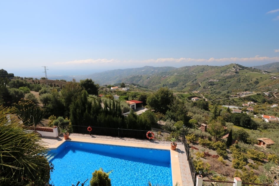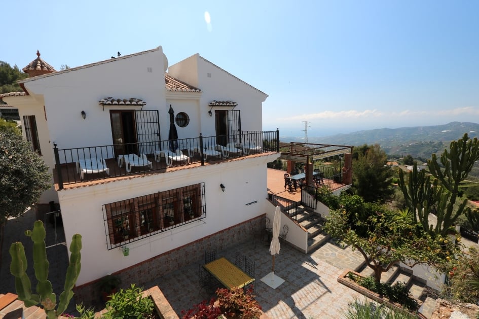 Stunning property which stands proud on the Andalucian hillside. Inside the villa is rustic and spacious with a sweeping staircase and gallery landing over looking the open plan living space below Patio doors open on to a patio terrace with panoramic views across the countryside down to the coast of Nerja in the distance whilst the small village of Frigiliana is closer by and can be easily reached by car. With six bedrooms & 4 bathrooms inside and a large swimming pool to the side of the ho...