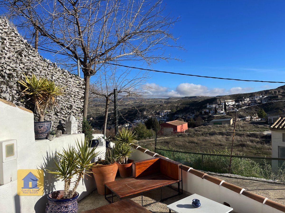 Cuevas de La Luz in Galera Cuevas de La Luz is a gorgeous, rambling pair of impeccably finished, interconnected cave houses, each with spacious front patios and views. The property is situated in the heights of Galera, a beautiful village, popular for holidays or fulltime living. The house on the right has been the primary residence. The house on the left is a successful holiday rental with a tourist license. The property has an entrance foyer, dining room, living room, 2 kitchens, 5 bedrooms ...