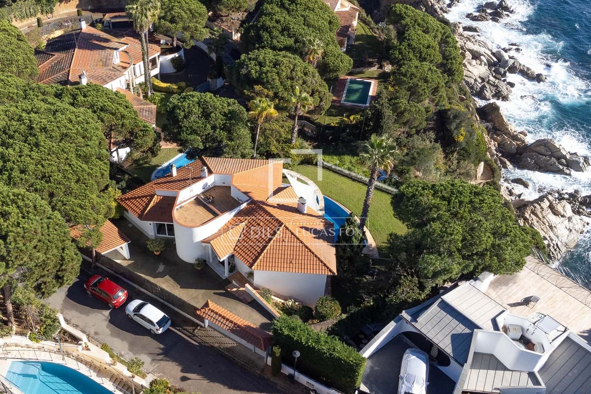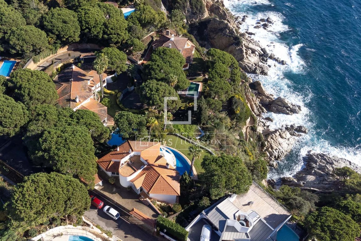 This spectacular property is located on a wonderful plot facing the sea in the exclusive residential complex of Mongoda, in the beautiful coastal town of Lloret de Mar on the Costa Brava. The four-bedroom property is distributed over two floors and sits on a large plot of just over 1,200 m2. All this with magnificent views of the sea and a lot of privacy. The 412 m2 property has four double bedrooms with private bathrooms and a guest bathroom. All bedrooms enjoy direct access to a large terr...