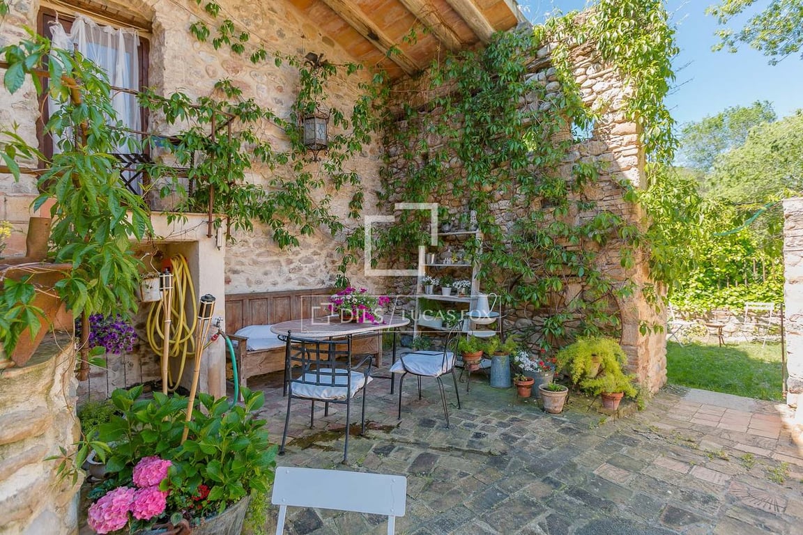 Lucas Fox presents this beautiful country house dating back to 1238 located in the church square, surrounded by other historic properties. On entering the house, there is a dining room on the left, a second dining room further on, a hall with a Catalan vaulted ceiling, an office on the right, a guest toilet and another breakfast area. Going down some stairs you reach a cellar with a large old melis wood beam. The large kitchen is at the back, of the Lacanche brand, with access to the boiler ...