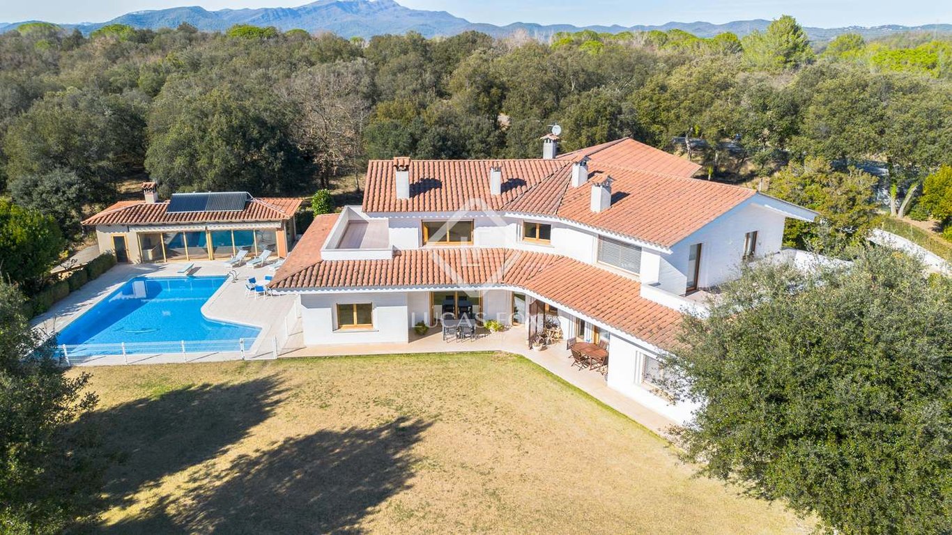 Lucas Fox presents this unique and elegant villa, located in the heart of the Llémena valley, one of the best preserved and spectacular natural places in the Gironès region, a few minutes from the city centre of Girona. The property was built in 1995 with a reinforced concrete structure and clinker-type brick walls. The property stands majestically on an urban plot of 3,098 m2 and a private oak forest plot of 4,180 m2, with a total plot area of 7,278 m2. The house is distributed in three wings...