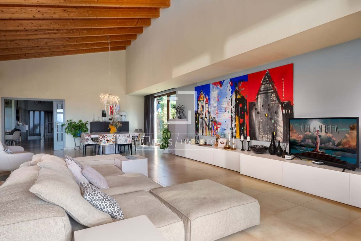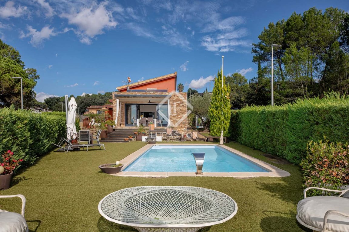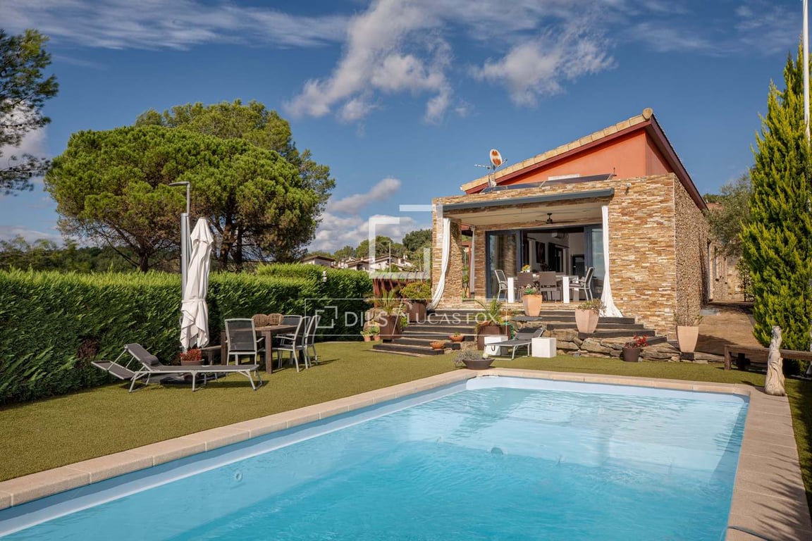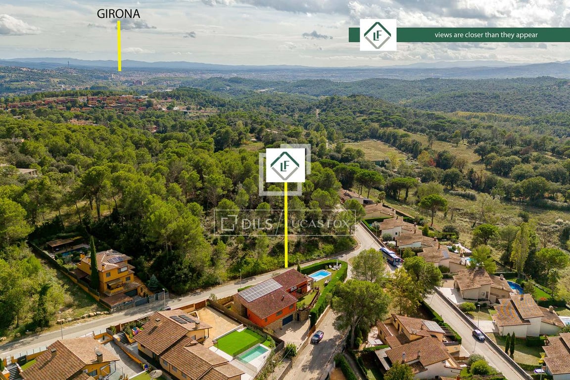 Lucas Fox exclusively presents this magnificent villa located in one of the most privileged areas of Girona, in a natural setting with panoramic mountain views, just 15 minutes from the city. This property was built between 2008-2009 and features a contemporary design with high quality finishes. Every detail has been carefully thought out by its current owners. The villa has spacious and bright open spaces inside, with large windows and plenty of natural light. The night area has four bedroo...
