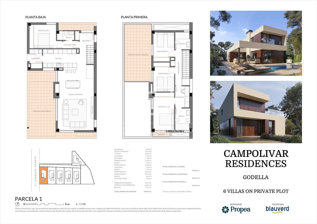 This property is part of the Campolivar Residence development , a new build of an exclusive residential complex of six luxury single-family villas. The villa has a total constructed area of 272.53 (with basement option) and 233 square meters (without basement option), and sits on a plot area of 578.69 square meters. It consists of a ground floor, first floor and basement (optional). On the ground floor there is a spacious dining room living room with access to a terrace, the dining room living...