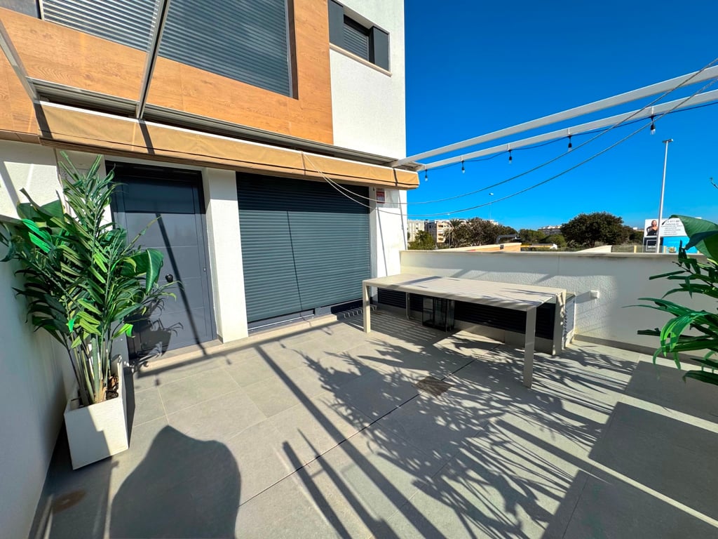 We are delighted to present this charming semi-detached corner property in Guardamar del Segura, offering spectacular sea views. The house is in perfect condition, virtually like new. Upon arrival, a small sunny garden welcomes you, perfect for enjoying tranquility and the sun. Inside, you will find a bright living-dining area with an open kitchen, a guest toilet, and an outdoor patio ideal for relaxing.The second floor features a single bedroom, a master bedroom, and a full bathroom. The thi...
