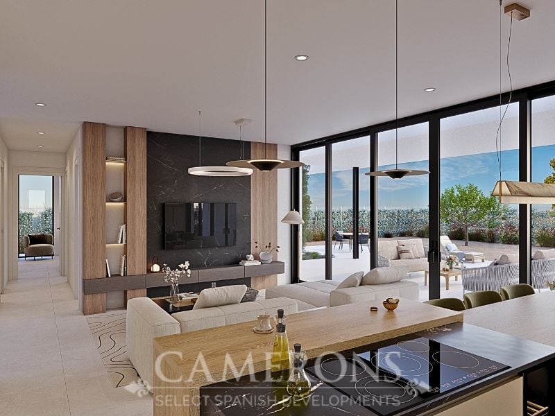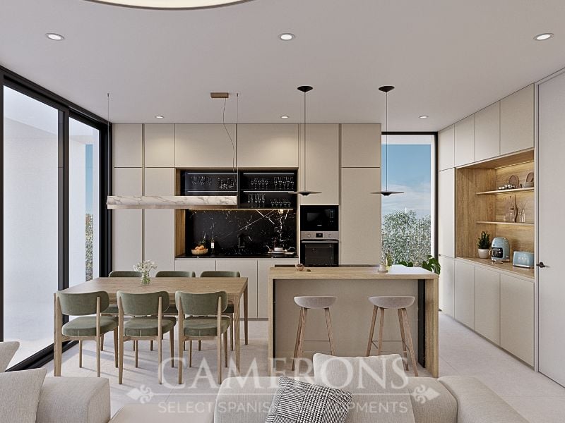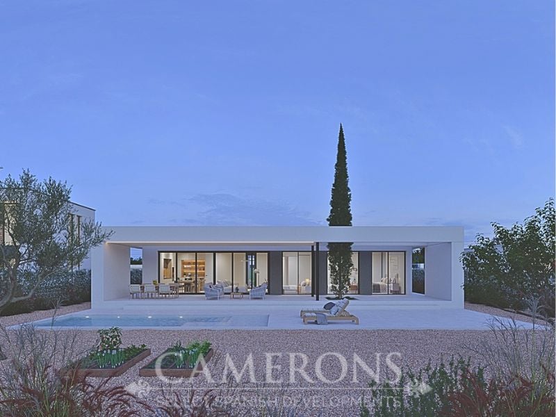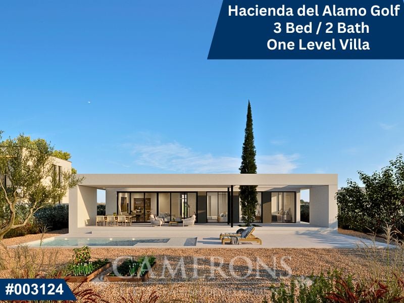New Project of 3 bed villas, all with 2 bathrooms, either all on one level villa or two stories, with plots up to 1000m2.Complete with private pool and solarium and optional basement.Open plan lounge and kitchen, with a dining area. The double windows in the lounge open onto a terrace and pool area.These properties bring the focus on the use of long-lasting materials and the highest quality finish.Hacienda del Alamo Golf resort is an exclusive residential area of Murcia. The internationally re...