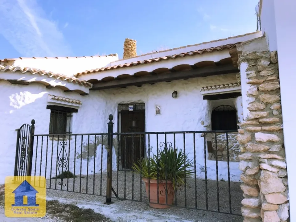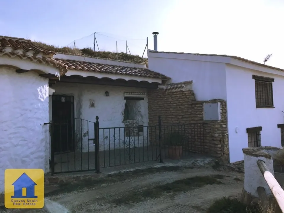 A lovely cosy cave house with a sunny terrace in front and a marvellous view to the village Huescar. Beautifully situated on a quiet spot. With a large kitchen, sittingroom with fireplace, and beautiful bathroom, with toilet, shower and sink and 2 independent bedrooms. Excellent condition. Access is good, parking in front. Bedrooms - 2 Bathrooms - 1 Water - connected Electricity - disconnected Sewage - connected Internet - possible Furniture - included Constructed - 58 m2 Superficie - 3...