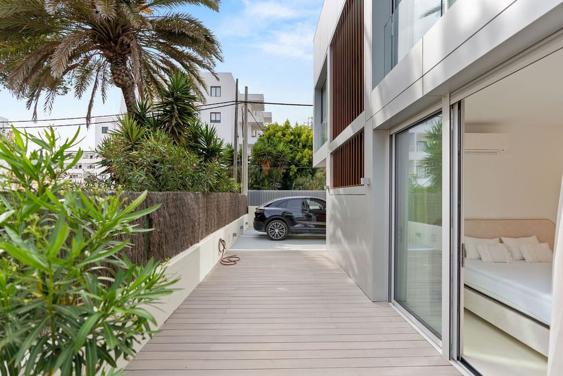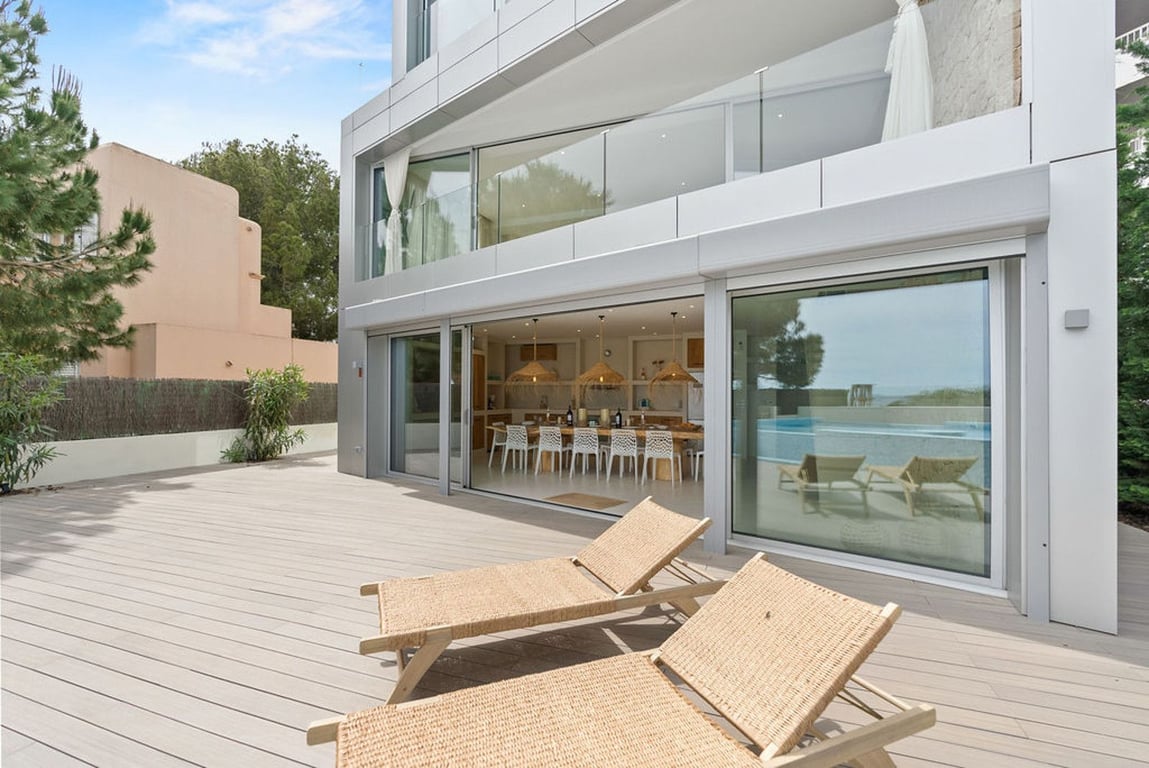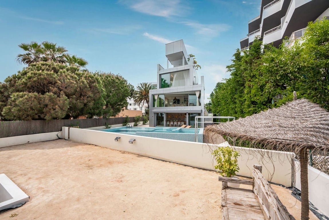 Modern luxury villa in Playa den Bossa with direct access to the sea. It consists of two residential units connected by a central staircase and lift. Absolute frontline location, with direct access to the sea from the property, private sandy beach, with pool and beach area. Modern and elegant interior design with high-quality materials. Roof terrace with spectacular sunset views and outdoor kitchen. Moderate building services: underfloor heating, heat pump, air conditioning, shutters on the grou...