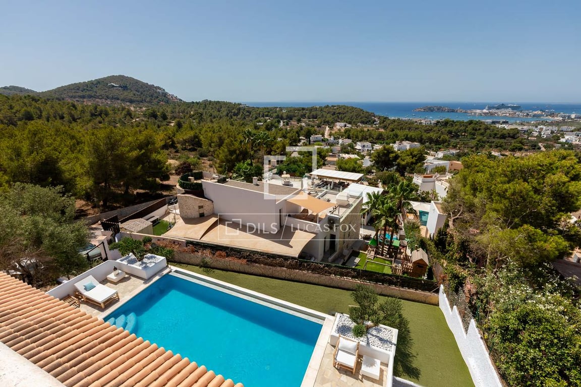 An unparalleled chance to acquire a premium property in Ibiza's most coveted area, offering incredible upside potential. Nestled on a generous 1,200 m2 plot, this estate features a 310 m2 residence with four bedrooms and a large swimming pool. Residents may revel in panoramic views of the sparkling sea, the iconic Dalt Vila, and the stunning island of Formentera from every corner of the property. Though the home has been cherished as a family residence for the past 20 years, it offers exciti...