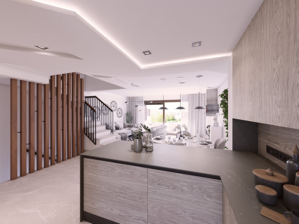 Town House for sale in Istan with 3 bedrooms and 2 bathrooms, with communal swimming pool, communal garage and communal garden. Regarding property dimensions, it has 190.27 m2 built and 48.55 m2 terrace. Has the following facilities garden view, mountain view, panoramic view, pool view, sea view, mountainside, brand new, solarium, fully fitted kitchen, kitchen equipped, open plan kitchen and gated community.