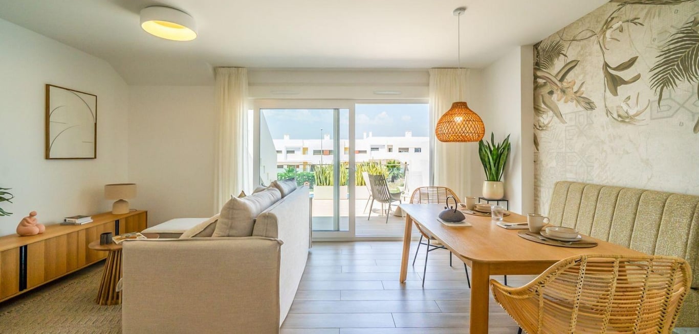 NEW BUILD RESIDENTIAL OF BUNGALOW APARTMENTS IN VISTABELLA New Build residential of modern design bungalow apartments in Vistabella. Modern bungalows with 2 and 3 bedrooms, open plan kitchen and the lounge area, fitted wardrobe, off road parking space. Townhouses and semi-detached houses with private garden and solarium. Residential has beautifully designed communal gardens with lovely communal swimming pool. These lovely spacious apartments are being built with top quality products & mater...