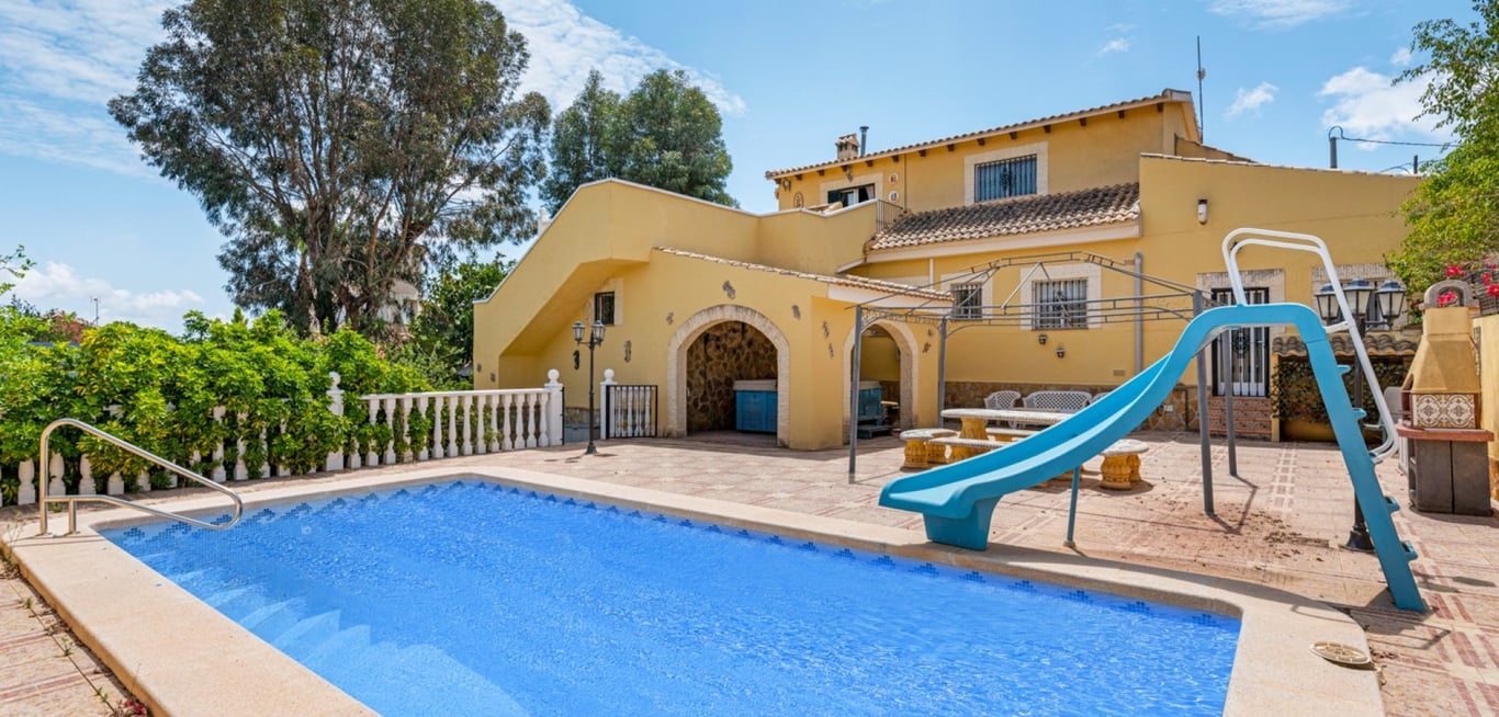 We are delighted to bring to the market this superb Villa in the sought after area of Vistabella between San Miguel de Salinas and Jacarilla. A quiet semi rural place but very close to all ameninities giving you the best of both worlds. The property sits on a plot over 1000m2 and benefits of a private pool and lots of outdoor space perfect for relaxing , sun bathing and entertaining. Laid on two floors ,On the ground floor there are 4 bedrooms, 3 bathrooms, dining room ,good size kitche...
