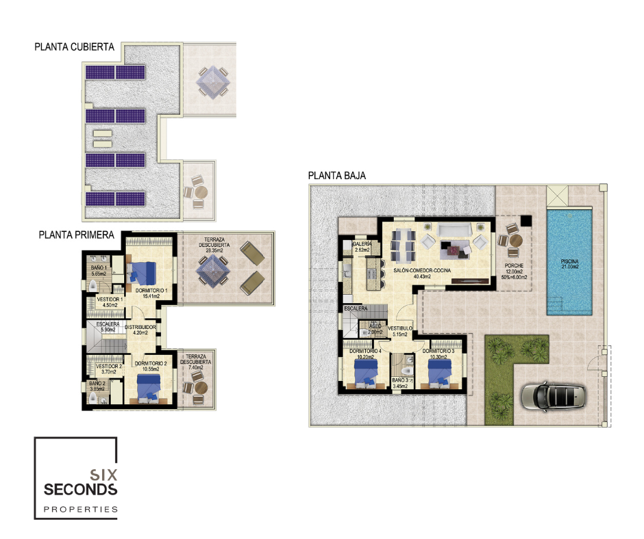 This new development of 48 homes in Vistabella Golf, next to Casas Blancas de Vistabella, combines modernity, comfort and Mediterranean charm, with maximum energy efficiency thanks to its class A certification. Designed in three different typologies, it offers options for all types of needs and lifestyles. The 169 m2 detached villas have 4 bedrooms and 3 bathrooms, with a large 318 m2 plot that includes a swimming pool and private parking. These exclusive homes have private terraces in the bedr...