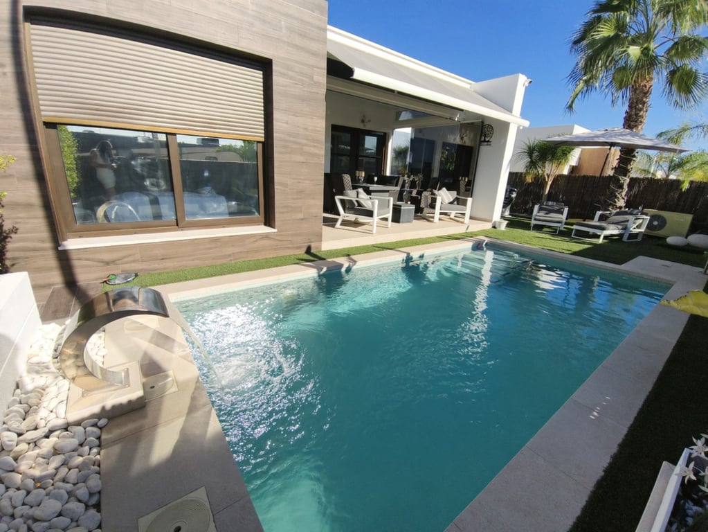 This modern, detached, single-story villa in Vistabella Golf redefines the concept of exclusivity on the Costa Blanca . Situated on a spacious 327.38 m2 plot and boasting 104.85 m2 of living space , this property offers an elegant, functional lifestyle focused entirely on comfort. It features three bedrooms —including a master suite with a bathroom —a second luxury bathroom , an internal storage room , and a spectacular 41.26 m2 solarium equipped with a private jacuzzi and a pergola that provide...