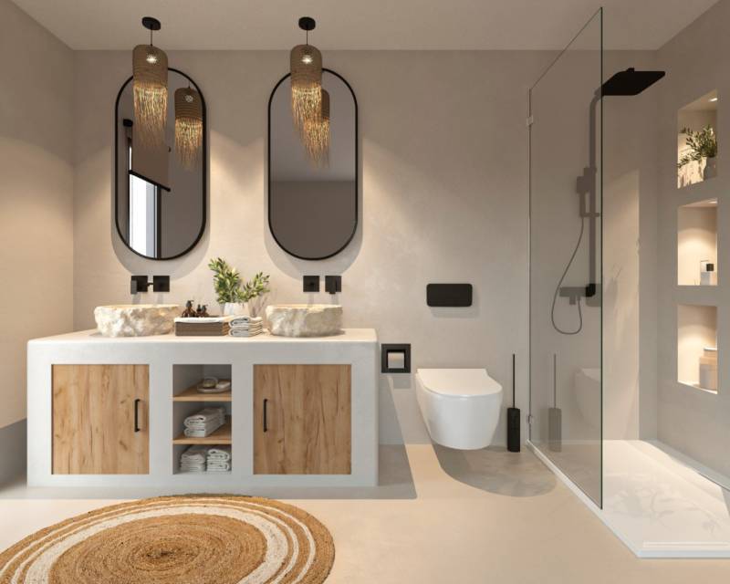 Villa for sale in Javea Stunning, south west facing, new build villa with Montgo views. The property combines timeless Mediterranean elegance with modern luxury and comfort. The white façade with curved lines is beautifully accented by hand-carved Montgó stone and smooth microcement floors and bathrooms pair perfectly with rust-toned aluminium windows. The villa is on one level and comprises: bright and spacious lounge-diner with large sliding doors to the terrace, fully equipped open kitchen,...