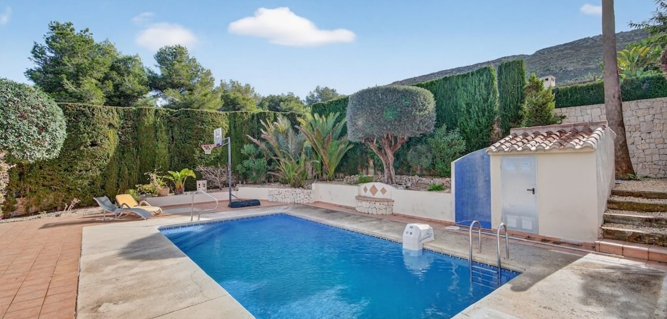 In the quiet and highly regarded residential area of Villes del Vent in Jávea, a detached villa awaits its new owners, combining privacy, comfort, and Mediterranean charm. The house sits on a 1,000 m2 plot, offering a well-maintained garden, a swimming pool, and a private green setting. The property has a total built area of 165 m2 and is distributed over two levels. It offers 4 comfortable bedrooms and 3 bathrooms – an ideal layout both for a family and for those who frequently host guests. ...