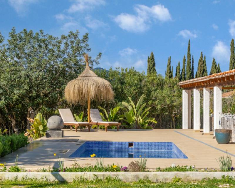 Villa for sale in Pinosol South facing, renovated villa on one level on a 2000m2 plot with total privacy. The property features: lounge-diner, large semi-open kitchen, guest cloakroom, 2 double bedrooms, a bathroom and a master bedroom with dressing room and ensuite bathroom. There is also a large wrap-around covered terrace complete with summer kitchen. Established, very private gardens with 3 versatile outbuildings (ideal as office space, studio, gym etc) and covered parking. Situated just a ...