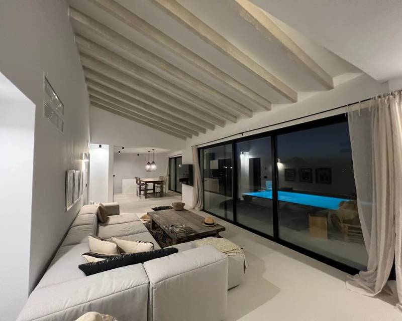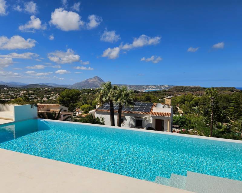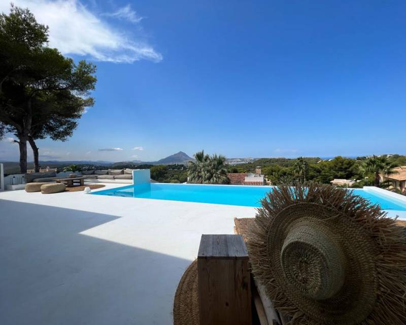 Villa for sale in Balcon al Mar Modern Ibizan style villa with views to the sea and the Montgo. The main living area is on one level with a spacious lounge-diner with access to the terrace, a large open plan kitchen and 3 bedrooms with ensuite bathrooms. From the kitchen there is access to the chillout area with barbecue. On the first floor there is a guest apartment, with pre-installation for a kitchen and a large bedroom with bathroom with shower. The property is equipped with underfloor hea...