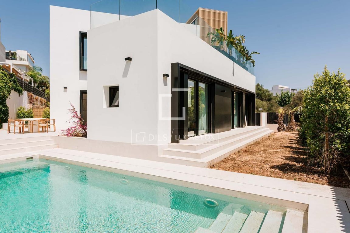Lucas Fox presents this exclusive new build villa , located in one of Ibiza's most desirable residential areas : Ses Torres, in Jesús. This impressive property combines contemporary design, high-quality finishes, and cutting-edge technology, offering maximum comfort and a Mediterranean lifestyle. The fully furnished and ready-to-move- in property is spread over two floors plus a rooftop terrace with panoramic sea views. It features three en-suite bedrooms, an study, a guest toilet, and a spaci...