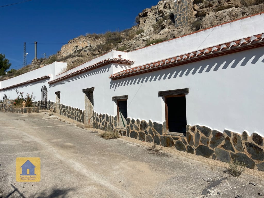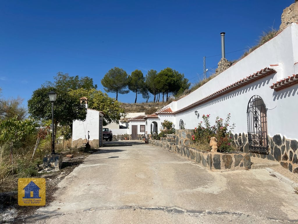 Cueva Villa Perez Izquierdo in La Alqueria (Galera) Beautiful, spacious, impeccably finished cave house with views and privacy, thanks to its elevated position set back from the road. This “cueva” was built by the owner, a local builder, as his own home. It features a patio with a garden area. It also includes two small unreformed caves that can be made into guest houses. You take the driveway up the small hill, passing between the entrance pillars and past the two unrformed caves, to reach th...