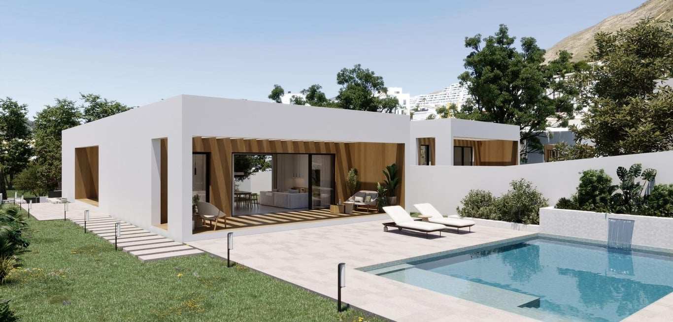Modern Single-Storey Villas with Private Pool in Finestrat – Tranquility Meets Coastal Living Exclusive New Build Villas on Spacious Plots Discover an exclusive collection of 7 new build villas in Finestrat, each thoughtfully designed on a single floor with 3 bedrooms, 2 bathrooms, and 1 guest toilet. Set on generous plots of over 600 m2, these properties offer an ideal blend of space, privacy, and elegance. Surrounded by lush Mediterranean landscaping and mountain views, these homes deliver a ...