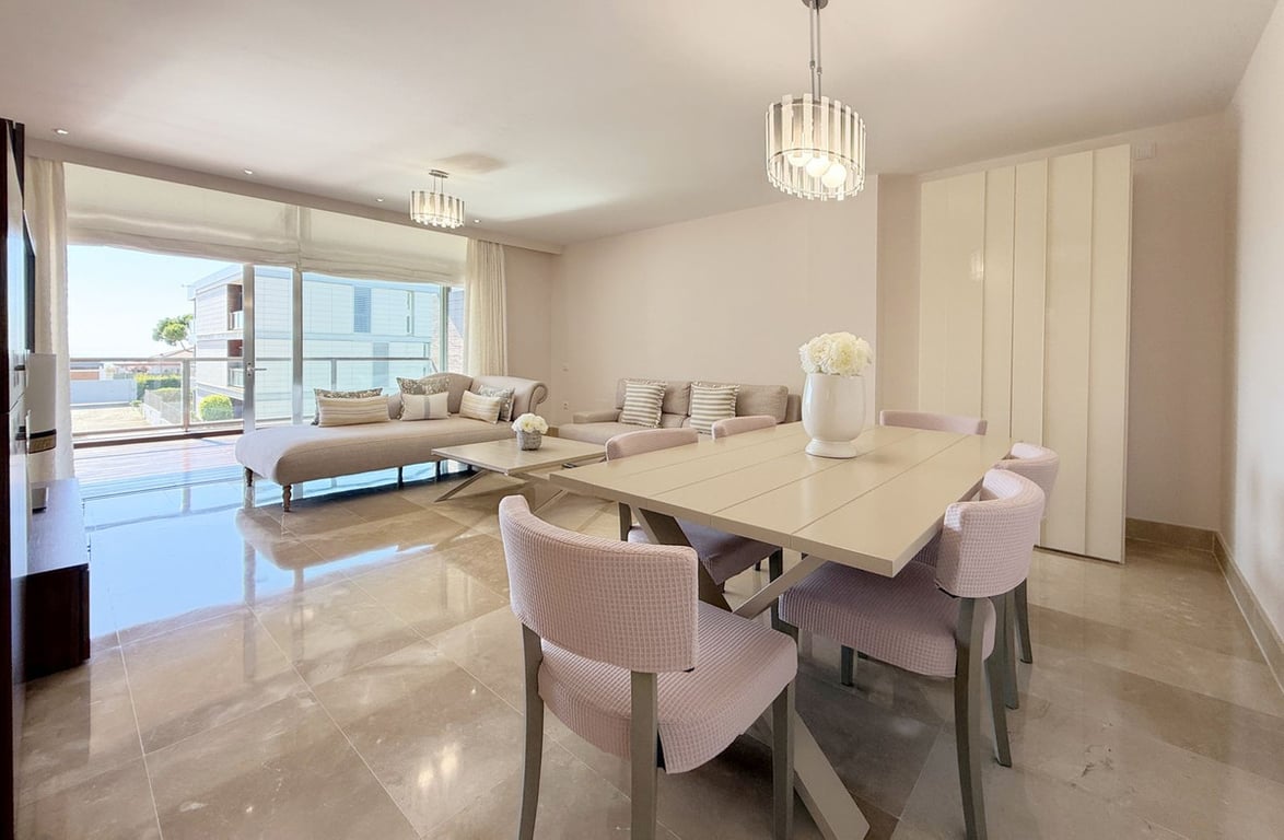 EXCLUSIVE LUXURY APARTMENT WITH LARGE TERRACE AND SEA VIEWS IN A PRIVATE RESIDENTIAL COMPLEX Privileged location in a beautiful private residential community with 24-hour security, offering peace, safety, and just 5 minutes from all essential services and the Port of La Duquesa. Situated in a meticulously maintained complex with extensive communal areas including an outdoor swimming pool, heated indoor pool, and a social area for events and gatherings. This sophisticated 3-bedroom, 3-bathroom pr...