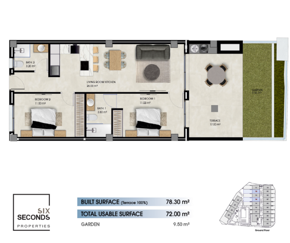 Experience the essence of the Mediterranean just steps from the sea in this modern residential complex comprised of 63 contemporary apartments , thoughtfully designed to maximize comfort , privacy , and coastal living. Each home offers two bedrooms , two bathrooms , light-filled spaces, a private terrace , as well as a parking space and storage room , all fully furnished for you to enjoy from day one. A versatile home, ideal for families or as a holiday rental investment , thanks to its attracti...