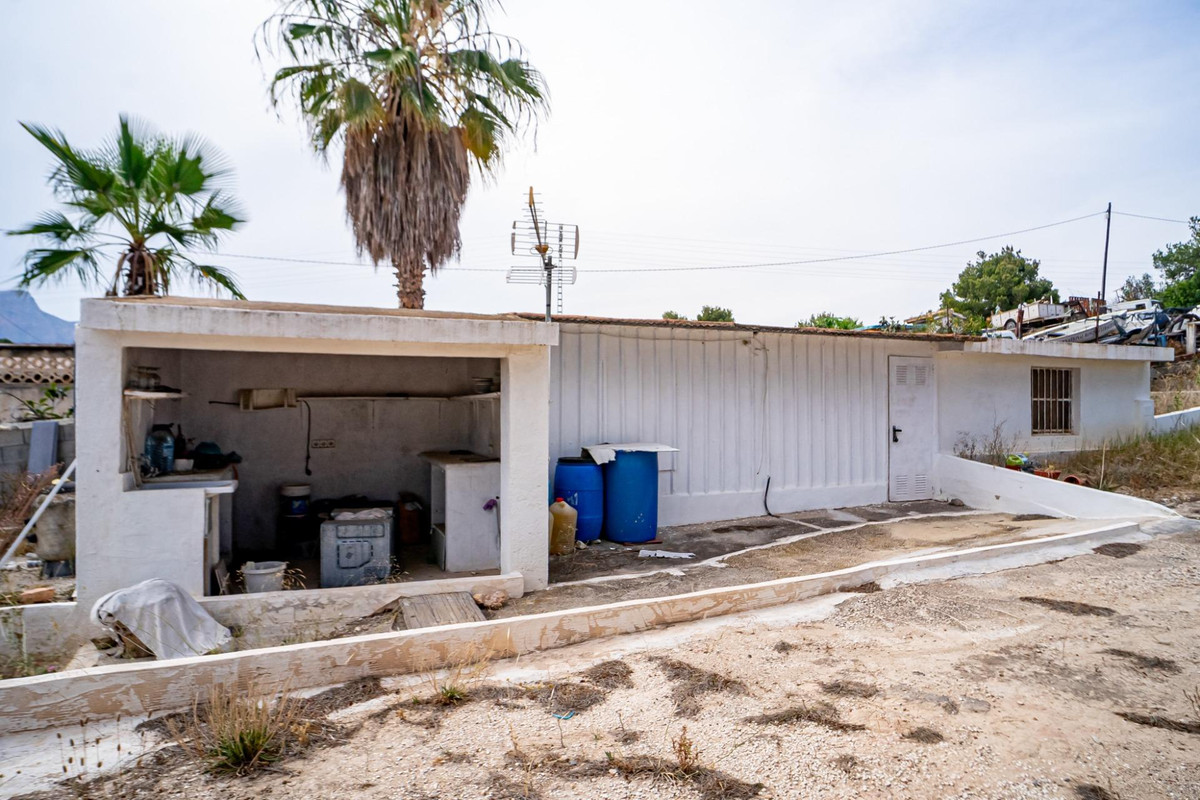 his country house is located between La Nucía and Altea, just a 10-minute drive from the center of Altea. The plot is mostly flat and covers 4,000 m2. It is currently unused, except for the areas where the buildings are located. The property offers open views of the sea, the mountains, and Altea. At the entrance, there are two covered parking spaces and a water reservoir for irrigation. The first building includes two rooms, each with its own entrance, connected by a window without glass. ...