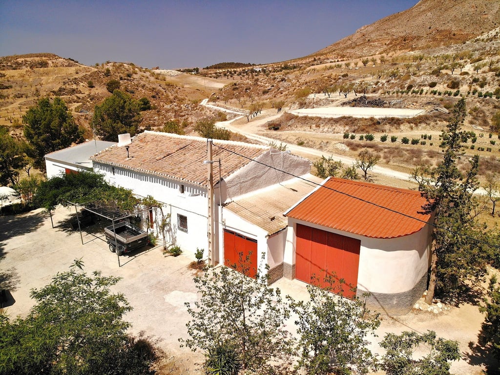 Character detached 2 storey 7 bedroom 1 bathroom Farm House/Finca (cortijo) with adjacent additional, large outbuildings to both sides of the house. Enclosed by over 45 hectares of land (457681 m2) of which approximately 20 hectares (non-irrigated land) are planted with ecological almond trees with a government grant, approximately 3 hectares of irrigated land with a mature orchard, an olive grove, vines and a vegetable garden. The property has water rights to a nearby fountain. There is a small...