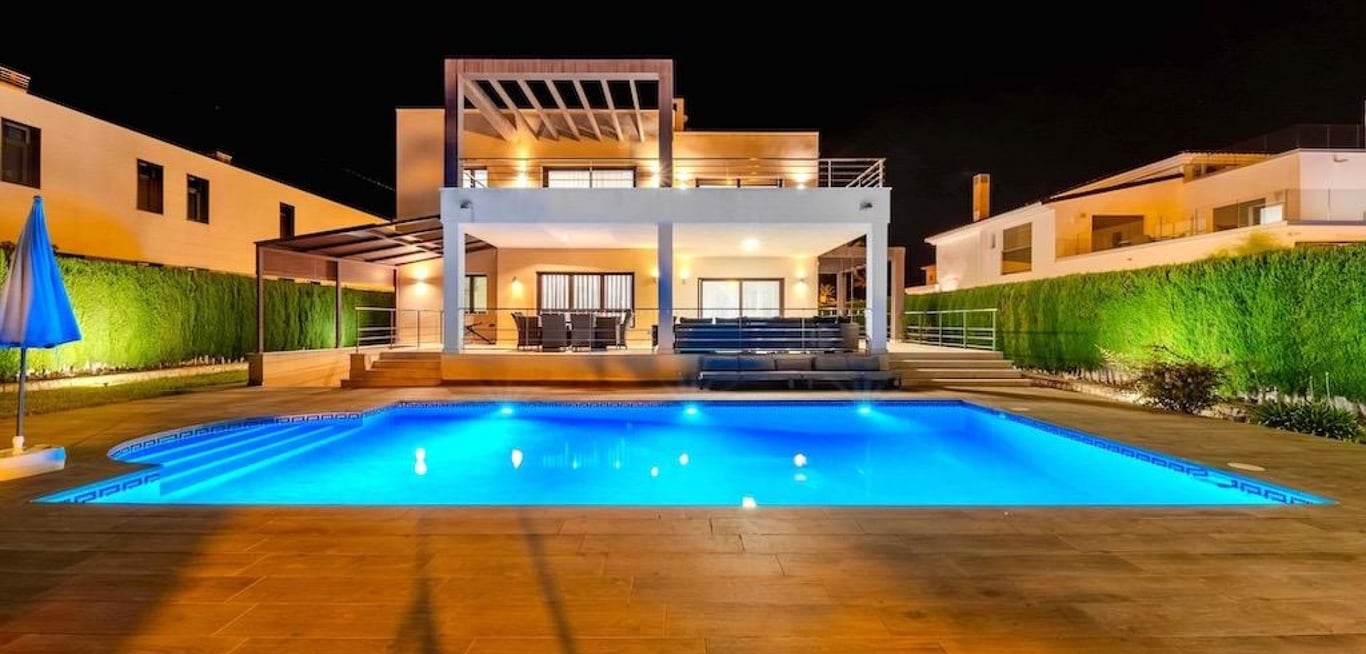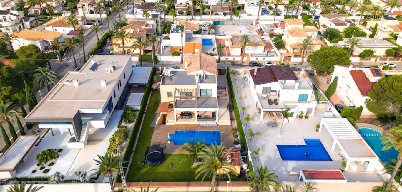 Cabo Roig – Exclusive Luxury Villa Just 300 Meters from the Sea. . Spectacular detached villa located in one of the most prestigious areas of the Costa Blanca, set on a spacious 1,095 m2 plot with 477 m2 of built living space, designed to offer maximum comfort and style.. . The property features 5 spacious bedrooms, 5 full bathrooms, and 2 guest toilets, a stylish living-dining room, fully equipped kitchen with pantry, game room, utility room, sauna, and 4 terraces to enjoy the Mediterranean cli...