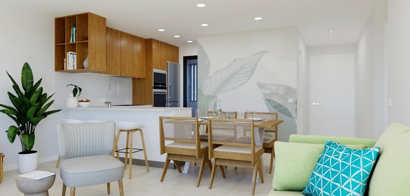 NEW BUILD RESIDENCIAL IN LOS BALCONES, TORREVIEJA New Build residential complex of semi-detached villas and bungalows located in Los Balcones with the views to the pink lake. New Build top floor bungalows has 2 bedrooms, 2 bathrooms, open plan kitchen with spacious living room, fitted wardrobes, terrace, private solarium and underground parking space. New exclusive residential with big communal areas; gardens, garden-gym, playground, 2 big communal swimming pools - one of them for adults, and...