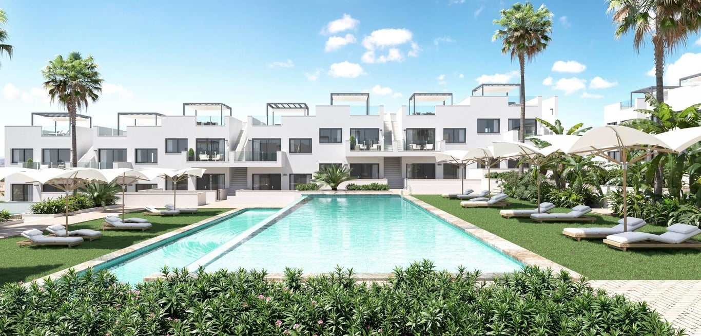 NEW BUILD RESIDENTIAL OF BUNGALOW APARTMENTS IN LOS BALCONES Discover the perfect harmony between luxury and comfort in our ground-floor apartments with a garden or upper-floor apartments featuring a balcony and solarium. The residences consist of 2 bedrooms and 2 bathrooms, with the option of a third bedroom to suit your needs. Each apartment offers spectacular views of the pink lagoon of Torrevieja, creating a unique experience where nature becomes an integral part of your daily life. The c...